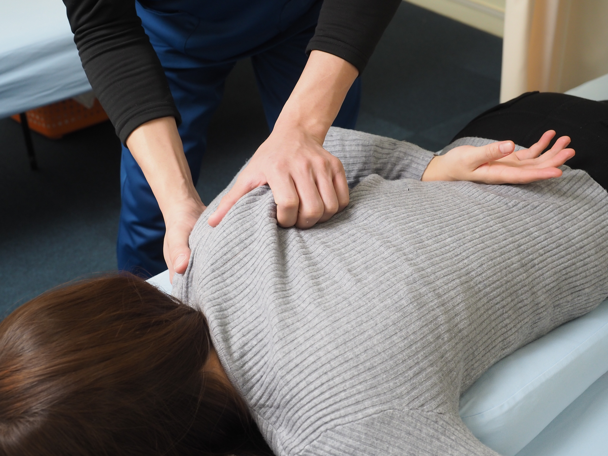 肩の高さの違いや骨盤の傾き、巻き肩の有無などをチェックし、肩のだるさの根本的な要因を見極めます。姿勢の崩れや骨格の歪みが影響している場合、適切なアプローチを行います。